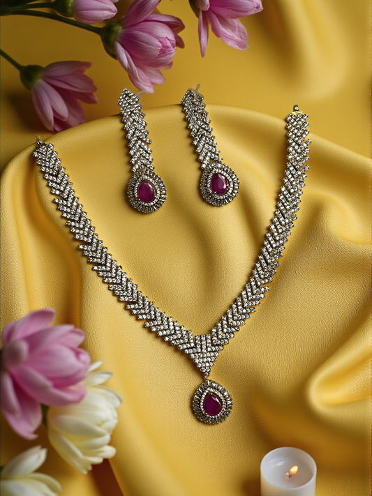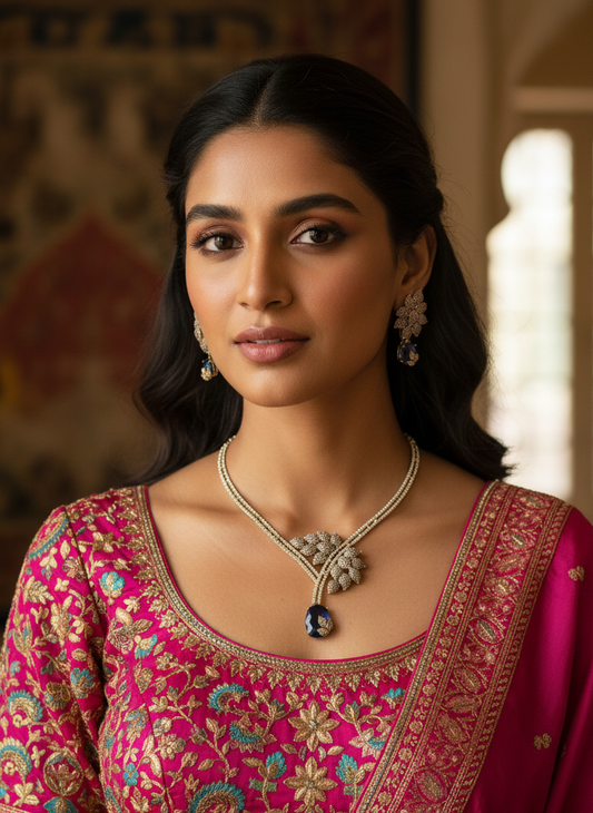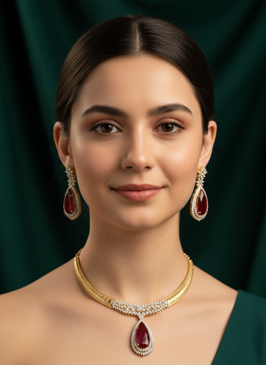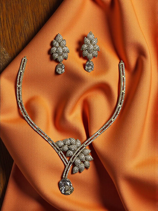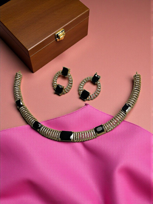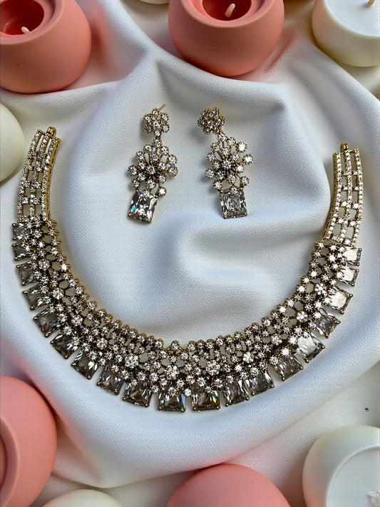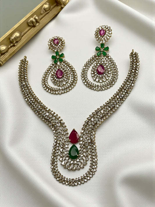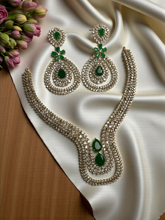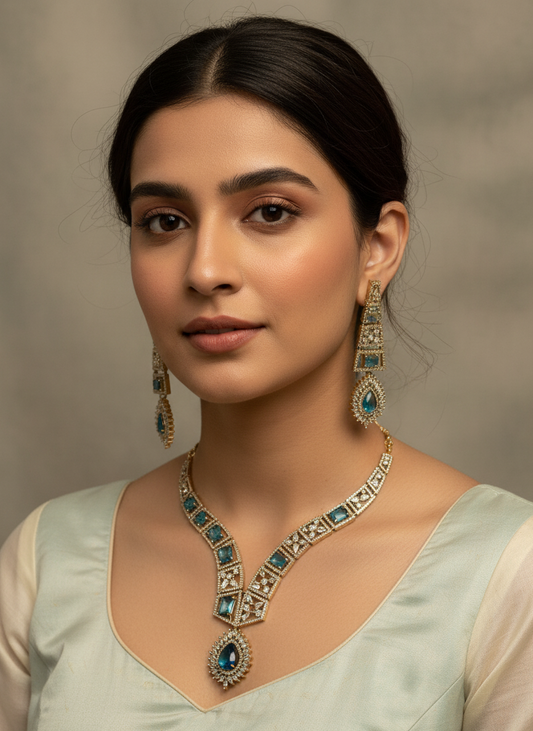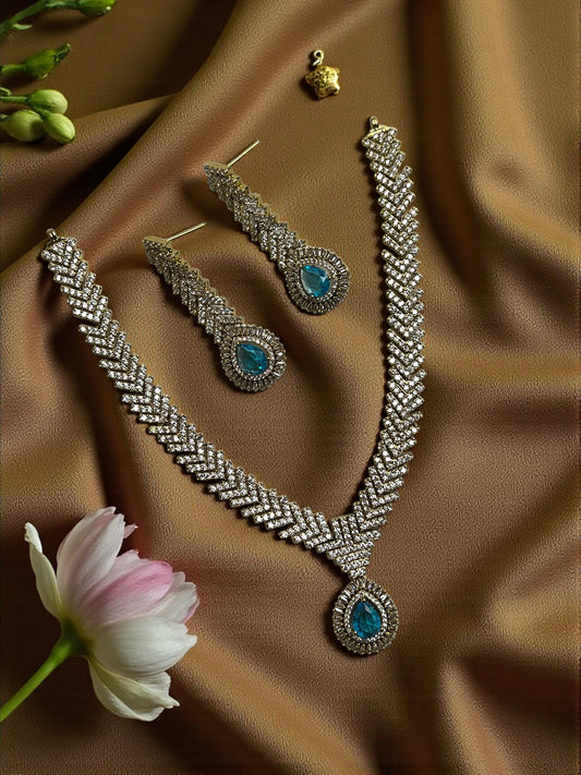 Turquoise Gold Jasmine American Diamond Necklace Set