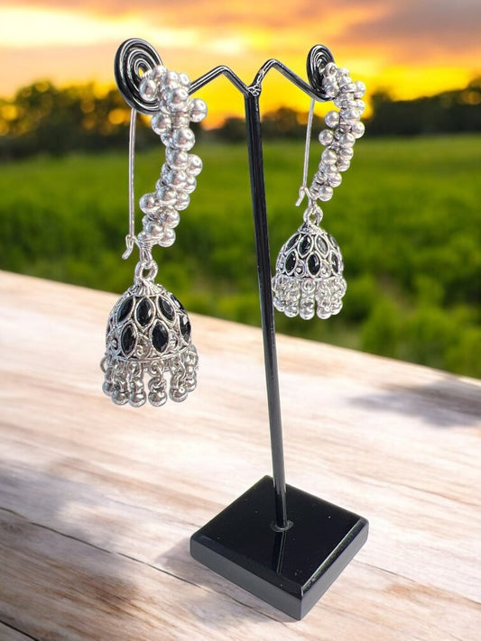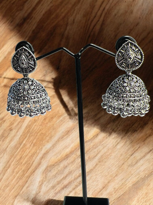 Oxidised Silver Manya Jhumki Earrings