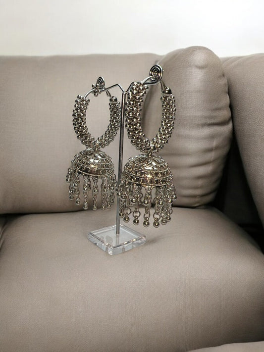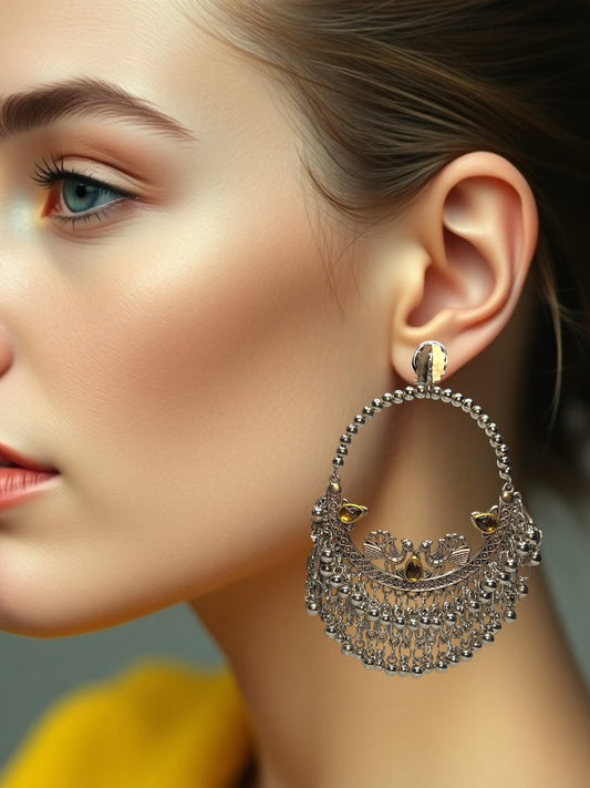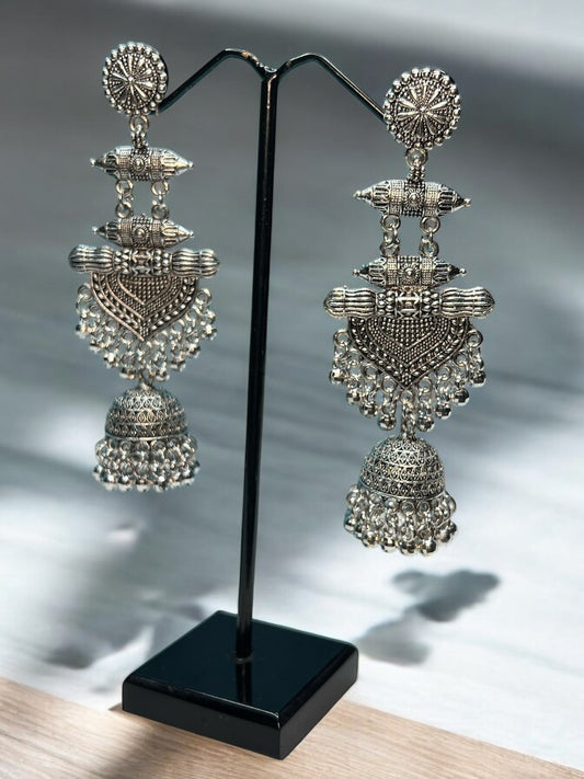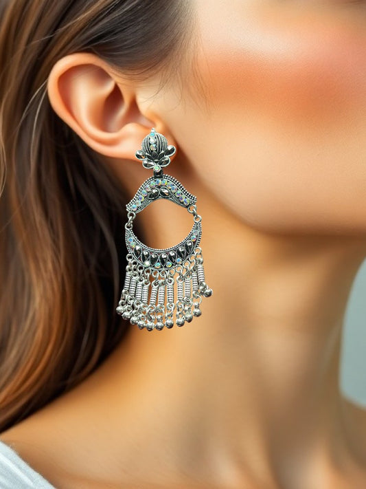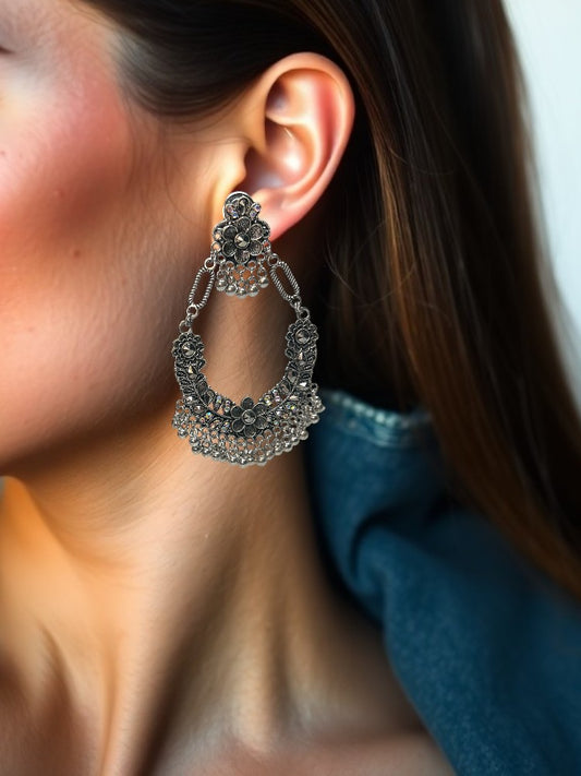 Oxidised jewelry has become a timeless trend, offering a perfect blend of vintage charm and modern elegance. Whether you’re looking for Oxidised Jhumkis to elevate your look or statement earrings to add a bold touch to your ensemble, oxidised pieces never fail to impress. The intricate detailing and antique finish of oxidised earrings make them a versatile accessory, pairing beautifully with ethnic wear as well as contemporary outfits. From delicate oxidized danglers to bold chandbalis and oxidised earrings jhumka, these earrings bring effortless sophistication to any style, making them a must-have for jewelry lovers.