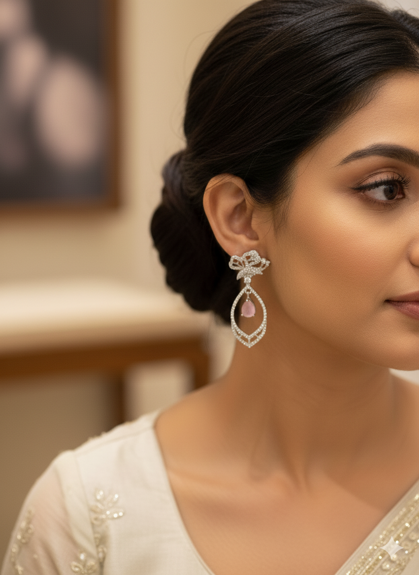 Elevate your everyday elegance with these Pink Oval Dangler Earrings. Featuring lustrous silver paired with delicate pink stone, these earrings embody timeless sophistication. The gracefully suspended oval design creates an enchanting sway, while their featherlight construction ensures comfort throughout your day. Whether adorning a boardroom or a casual brunch, these versatile pieces effortlessly enhance your natural beauty.